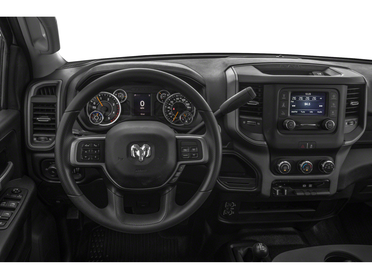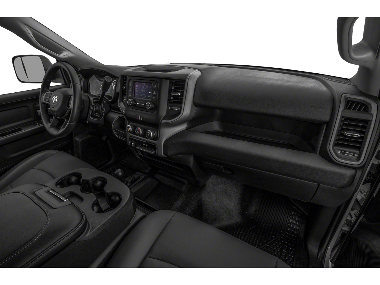 Our Big Horn cabin has key benefits for better trucking, starting with supportive cloth seats, air conditioning, power accessories, cruise control, a 12V power outlet, a 3.5-inch color driver display, and keyless access/ignition. A Uconnect® infotainment system answers the call for digital convenience with an 8.4-inch touchscreen, voice control, WiFi compatibility, Android Auto®, Apple CarPlay®, and a six-speaker sound system.