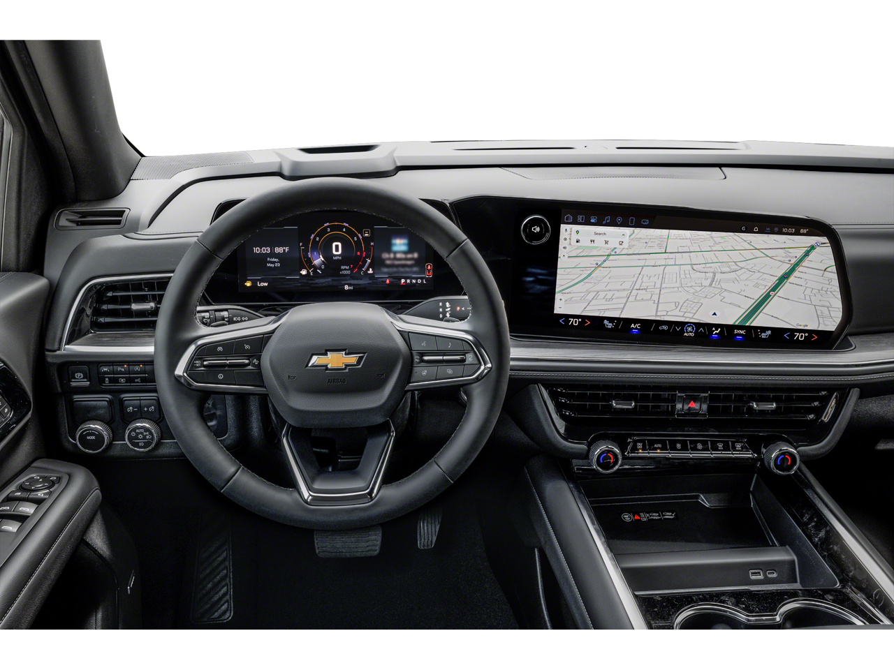 Enjoy a room with a view in our LT cabin, which rewards your family with heated leather power front seats, flexible second and third rows, a wrapped steering wheel, tri-zone automatic climate control, keyless access/ignition, remote start, cruise control, and 12V/120V power outlets. The intelligent infotainment system can keep you connected with a 10.2-inch touchscreen, a 12-inch driver display, connected navigation, Bose audio, WiFi compatibility, voice control, wireless Android Auto®/Apple CarPlay®, wireless charging, and Bluetooth®.